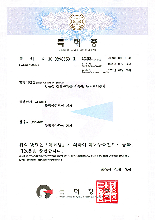 지식경제부 장관상 수상 "제72475호"