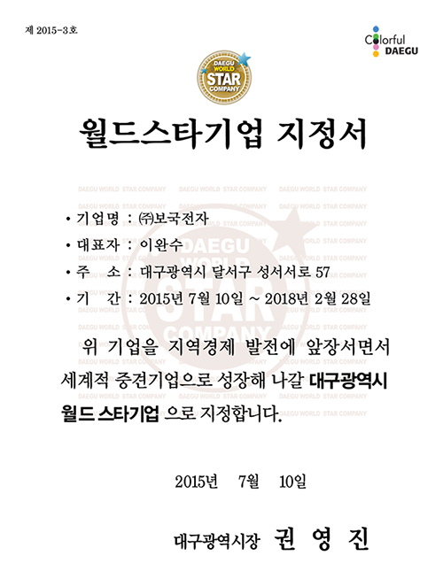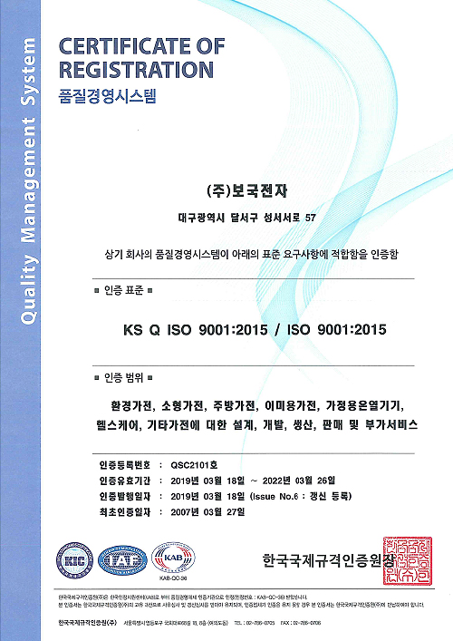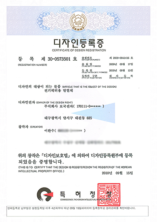 150건의 안전인증마크보국은 그 동안 전기요 및 가전제품의 기술력을 바탕으로 꾸준한 기술 개발을 통해